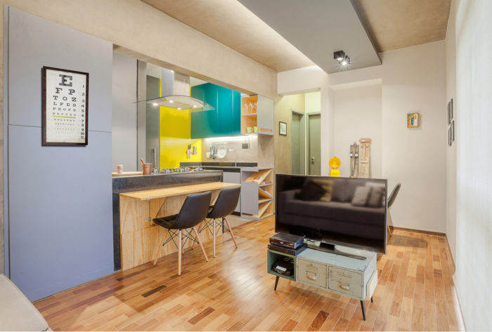 53 inacreditáveis metros quadrados e nosso gigante de personalidade, de ousadia e de funcionalidade! Uma alegria de projetar, uma alegria de se morar e viver por lá! Sabe aquele sorriso tímido e prazeroso e aquele suspiro de alívio que todos almejam após um dia longo e exaustivo dia de trabalho? Foi o que conquistamos para nosso cliente todos os dias ao abrir a porta de casa!